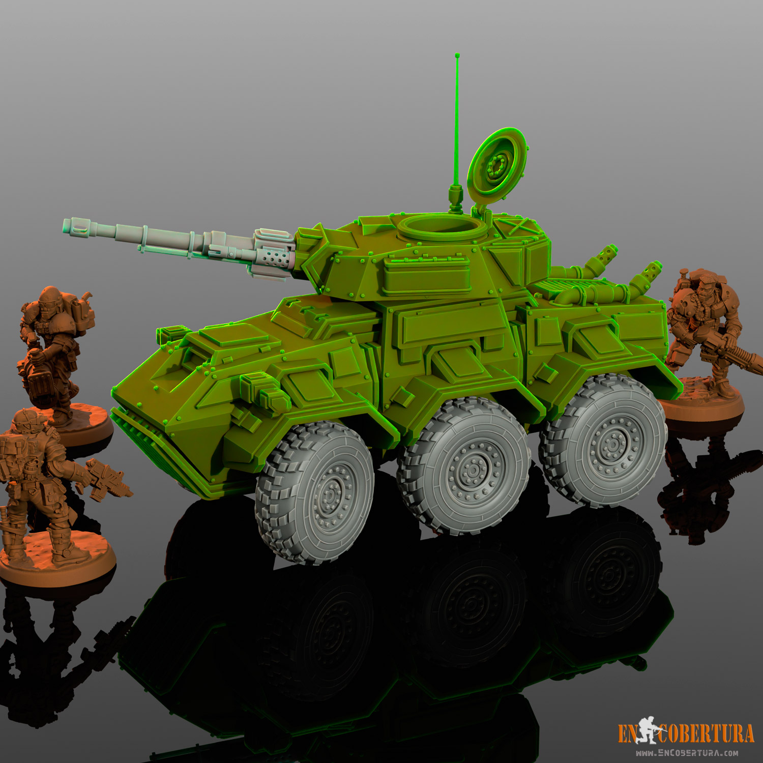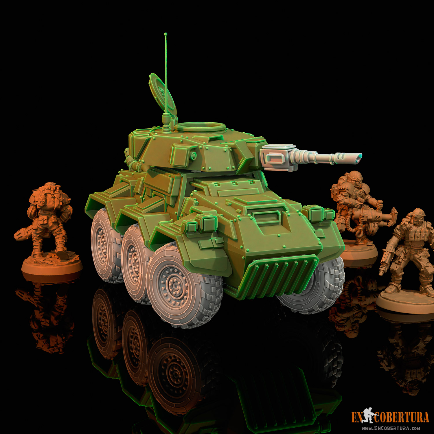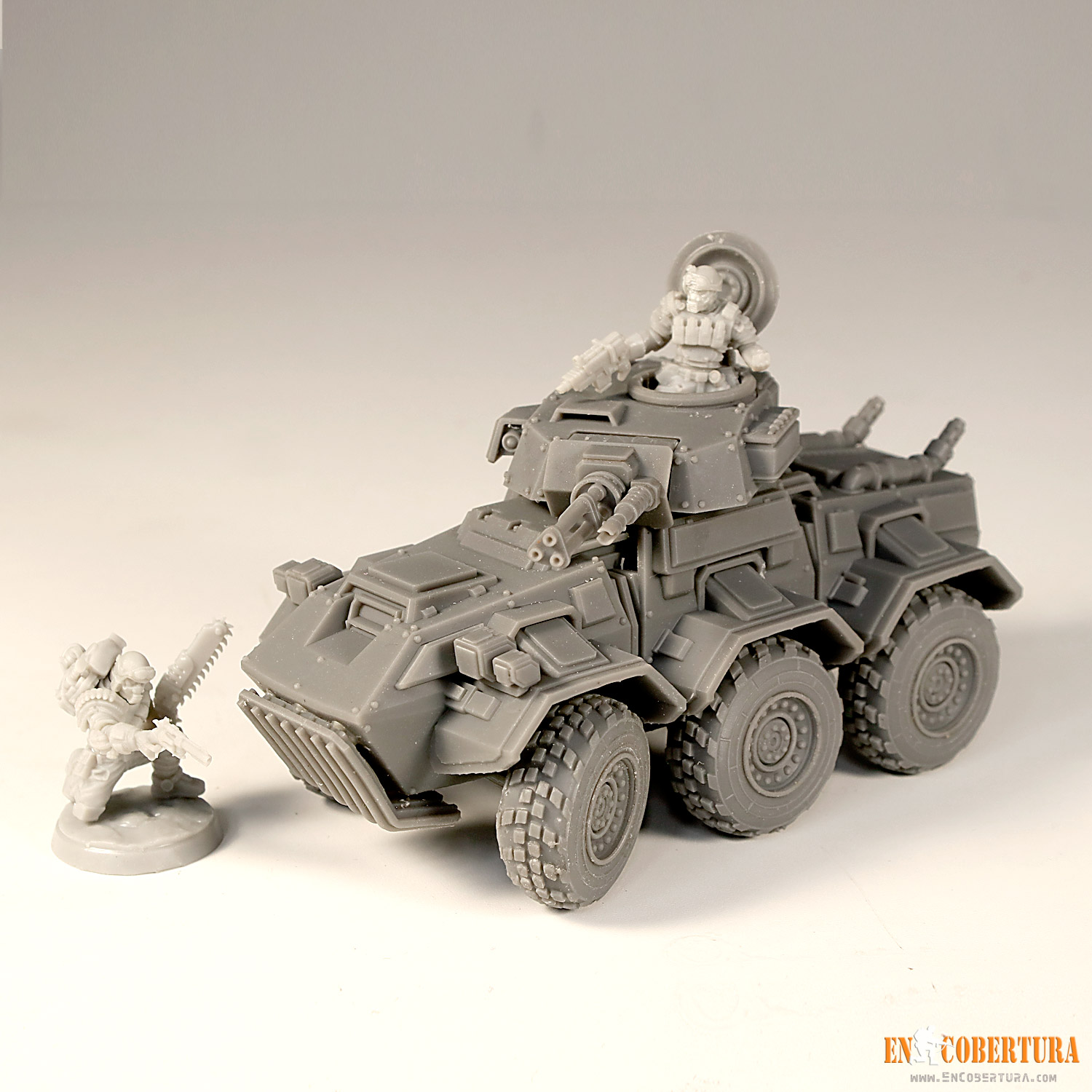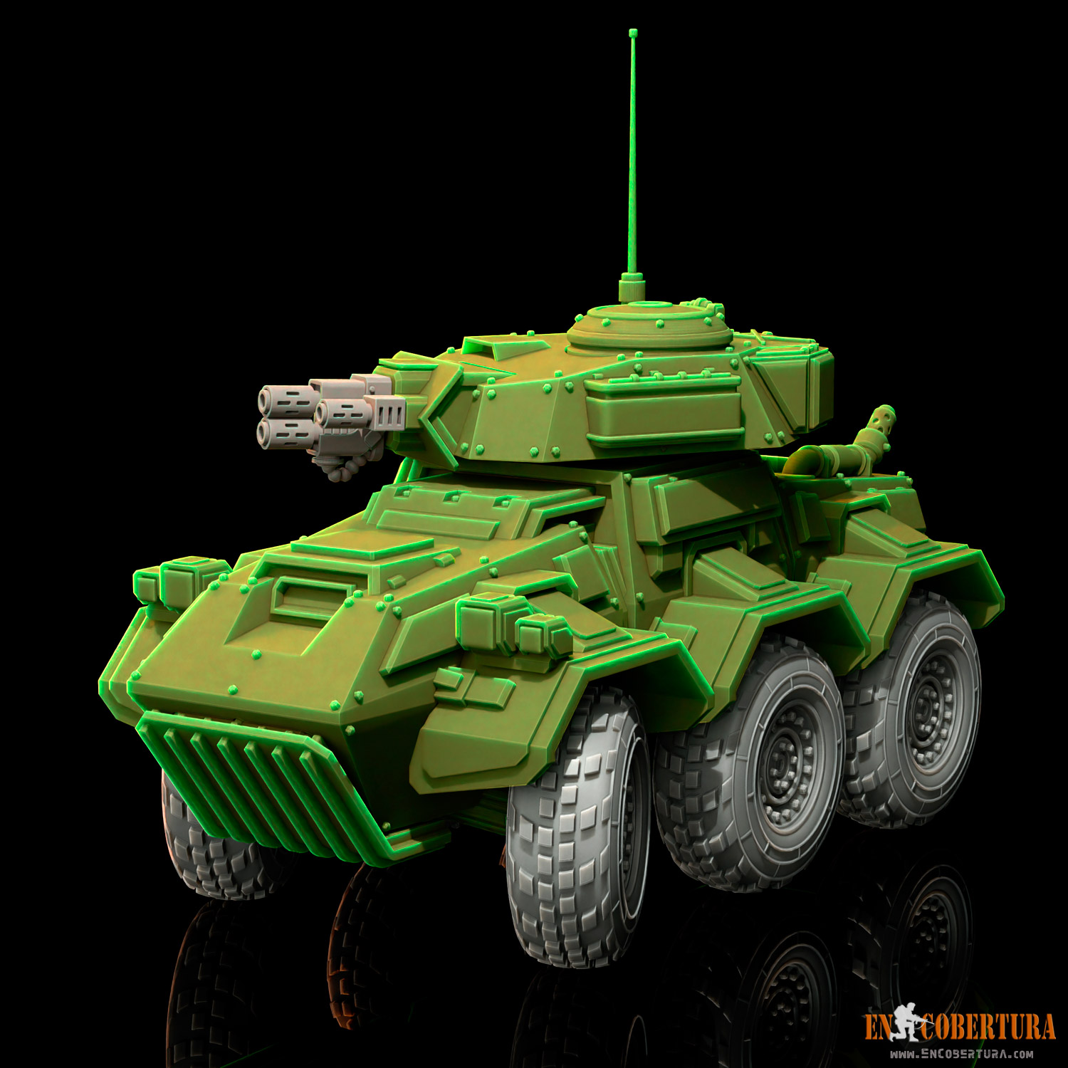 A light vehicle for your favorite Sci-Fi, Grimdark or Post-apocalyptic wargames!! pre-supported (.chitubox files) and free standing model (.stl files) for resin printers (ABS-Like resin recommended), with several weapons options.