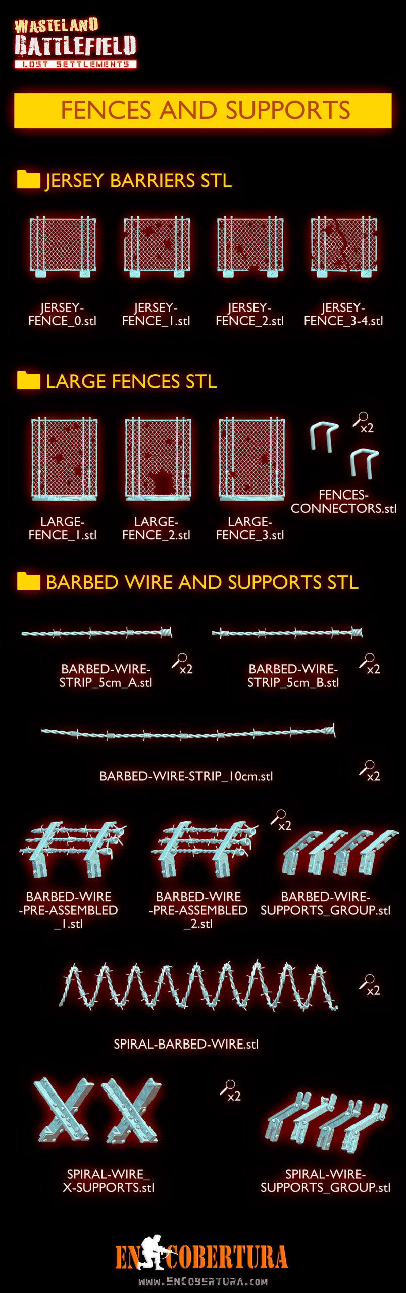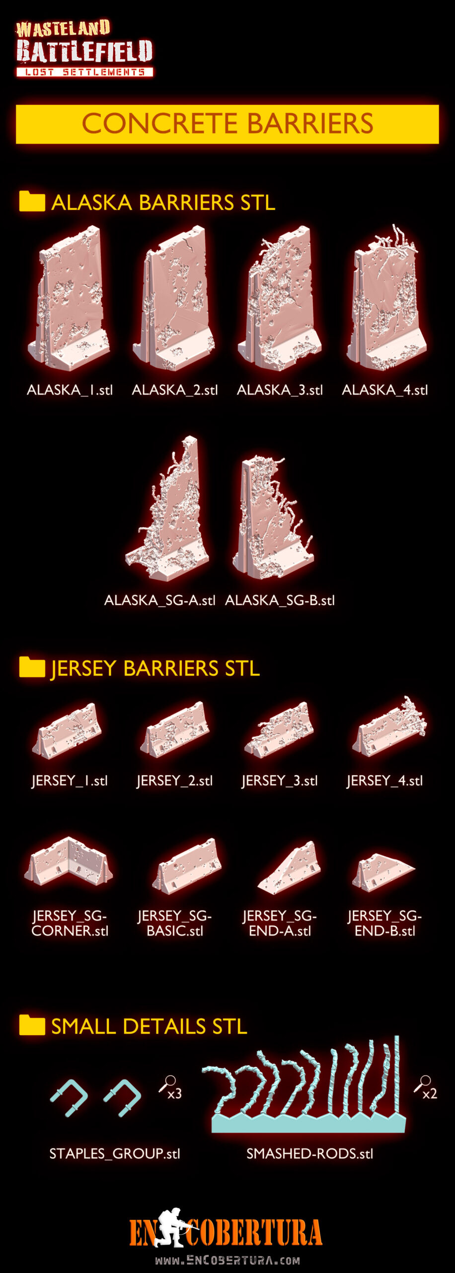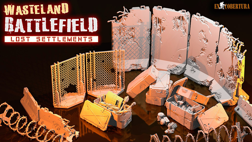 Lost Settlements is the first volume in a series of grimdark and post-apocalyptic wargame terrain we have in mind: Wasteland Battlefield. This volume offers pieces to represent ruined outposts and no man’s land settlements: concrete barriers, sections of barbed wire, ammunition crates, smashed containers… Places looted, or places to be looted!